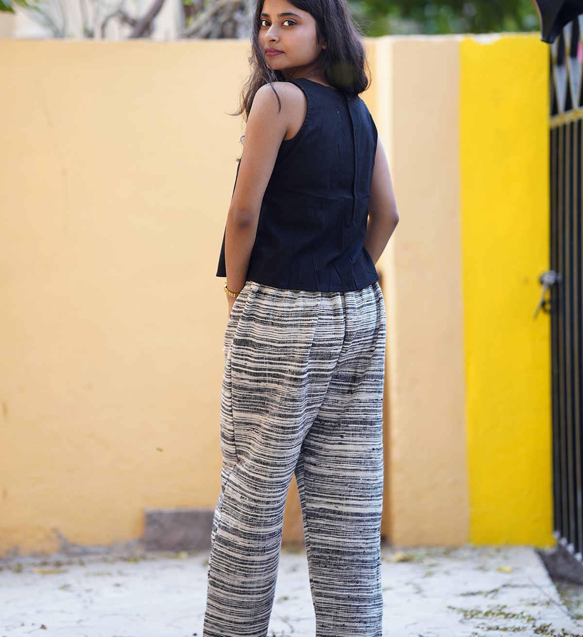 Relaxed straight pants tailored to perfection out of handspun, handwoven Malaysian cotton-with pockets and an elastic waistband, here’s our pick for days when you want to be chic and stylish without any effort!
